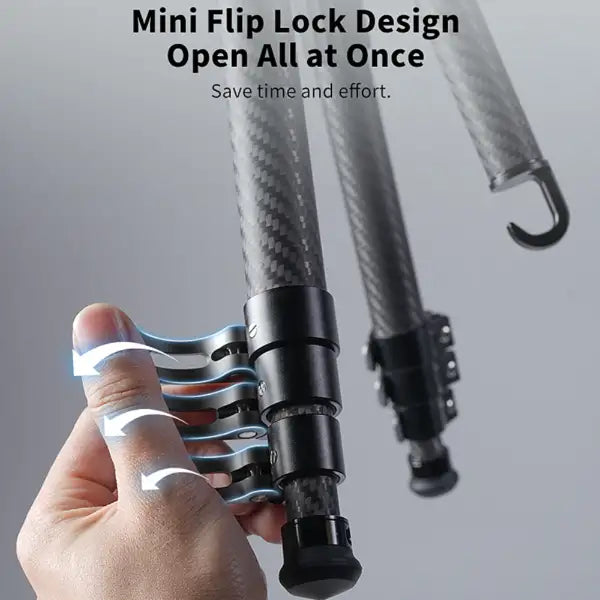 脚部は16-25mm管径ながら、3kカーボンファイバーを採用するとこで強度を確保。
