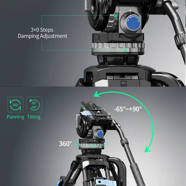 3+0ダンピング調整、0~10の負荷容量、プロフェッショナルなパンおよびチルト制御は、ハイエンドな映像制作に最適です。